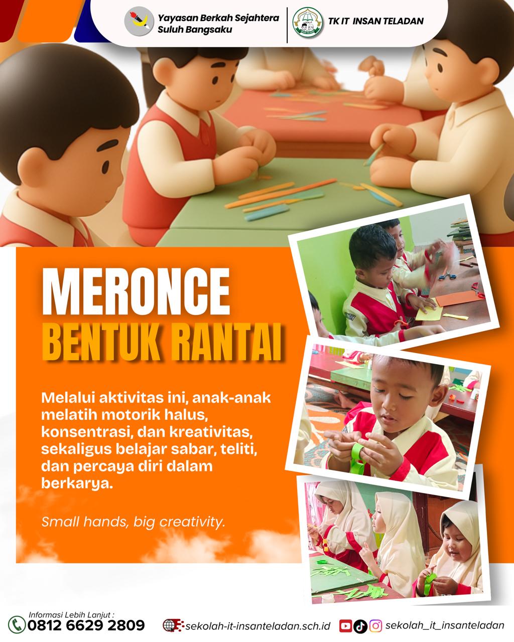 Melalui kegiatan meronce bentuk rantai, ananda TK IT Insan Teladan melatih motorik halus, meningkatkan konsentrasi, serta mengembangkan kreativitas sejak dini.