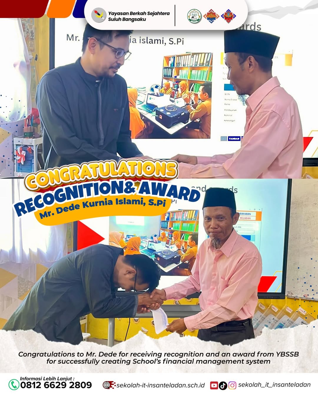 Congratulations to Mr. Dede Kurnia Islami, S.Pi., for receiving recognition and an award from YBSSB for his outstanding contribution in successfully creating a financial template to support the school’s financial management system.