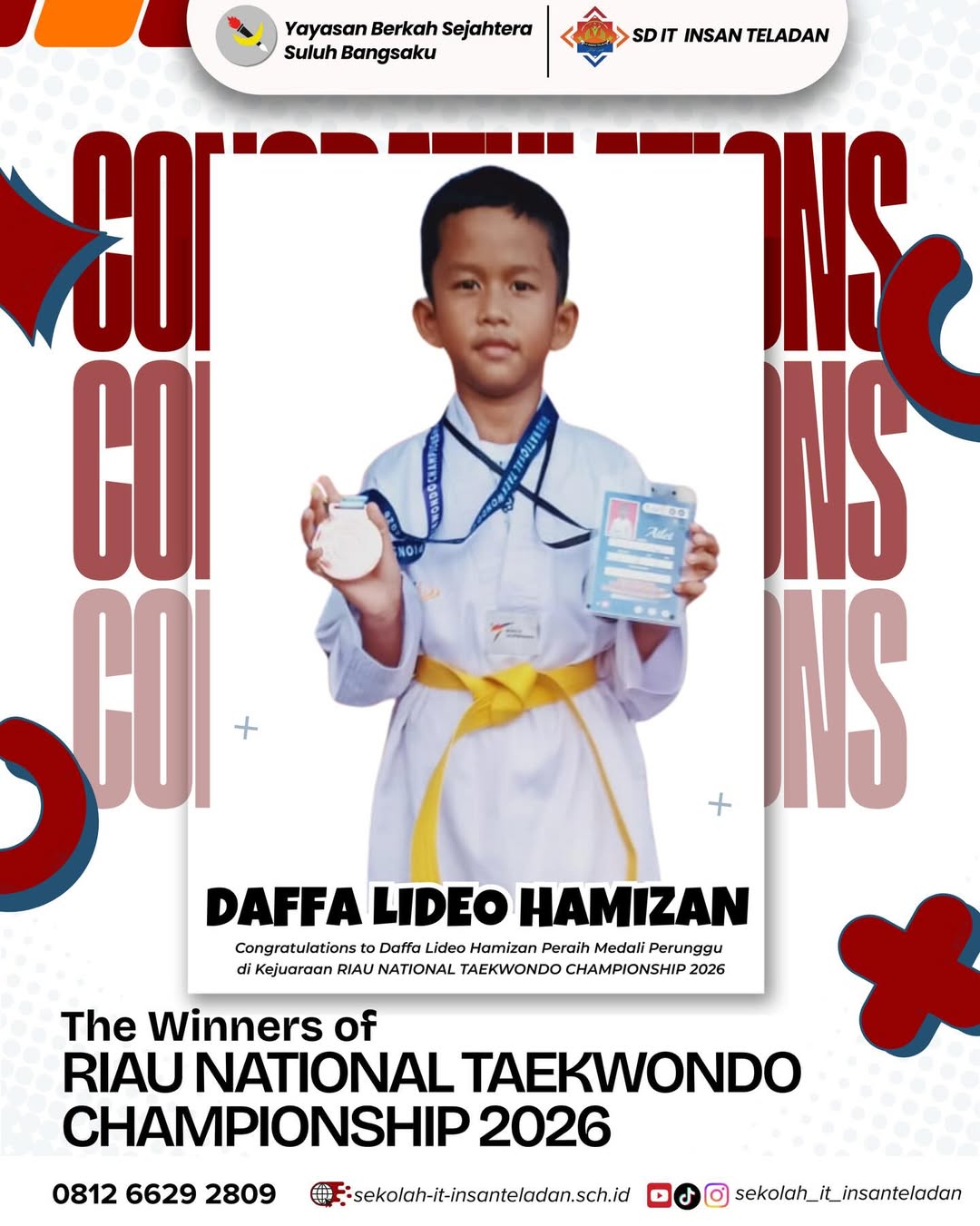 Alhamdulillah, ananda SD IT Insan Teladan kembali menorehkan prestasi pada ajang Riau National Taekwondo Championship Riau.