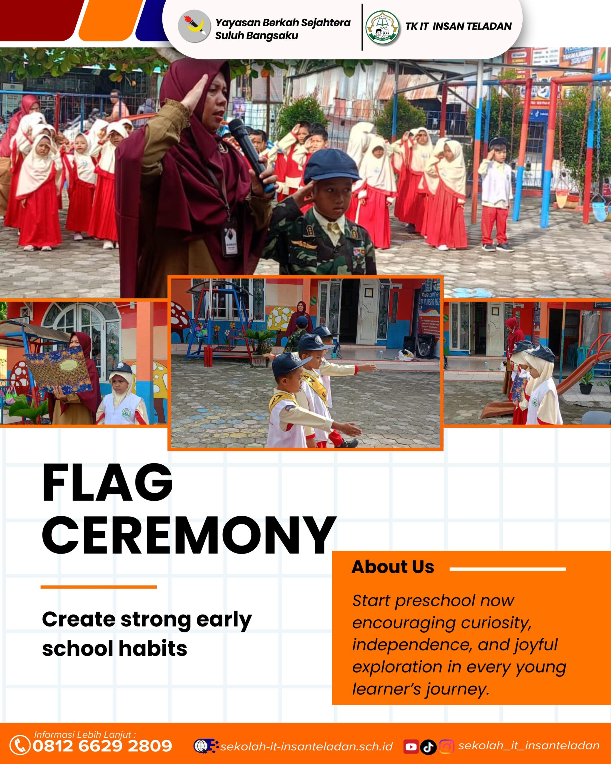Hari ini, ananda TK IT Insan Teladan mengikuti Upacara Bendera Merah Putih dengan penuh semangat dan kedisiplinan.